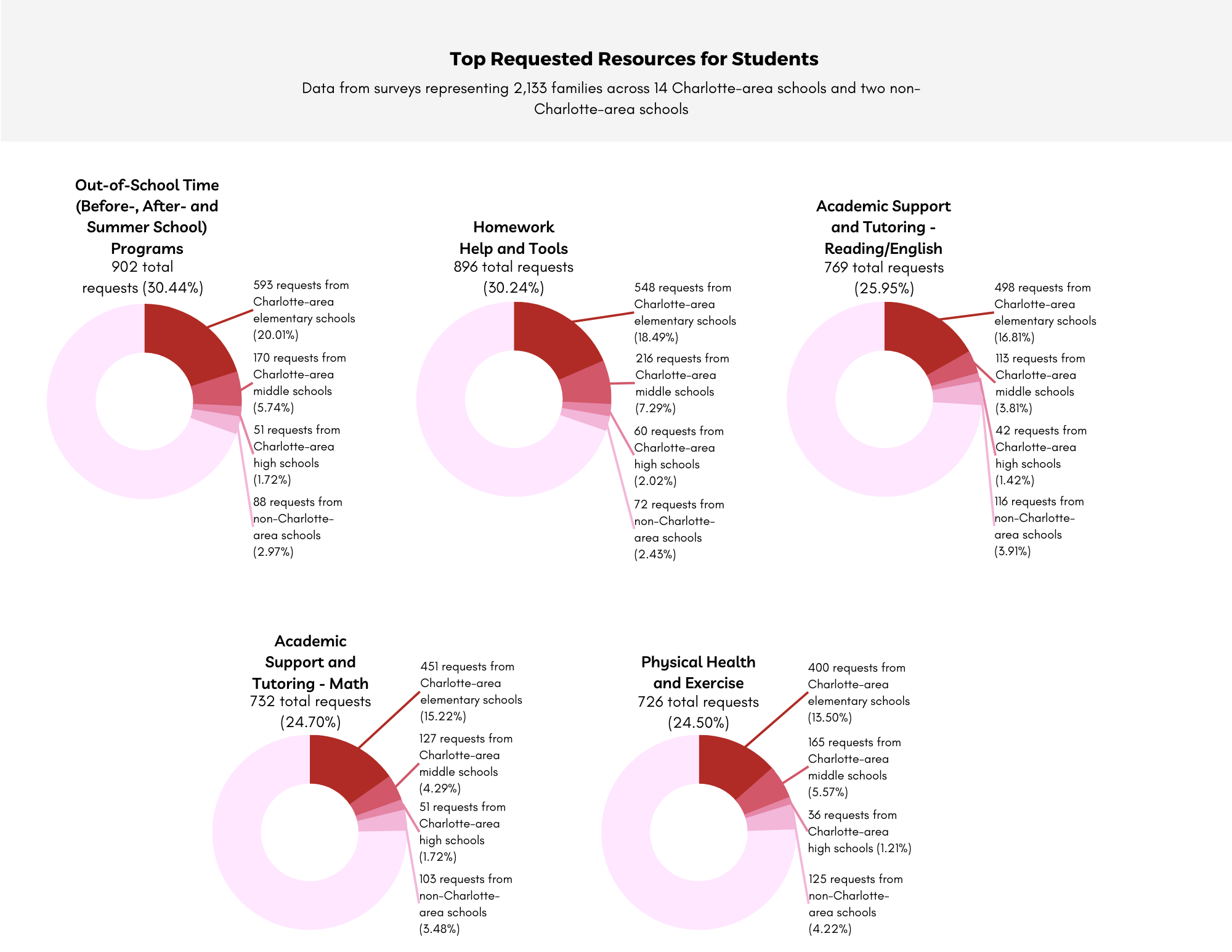 Out of these 2,133 surveys, 1,874 surveys represented families from our schools in the Charlotte area, representing 2,620 students.